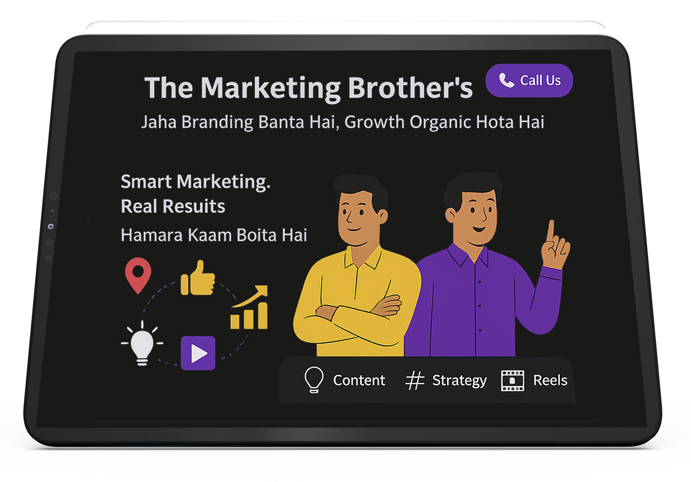 Ye design humara original hai – kisi aur site pe upload ya resell karna allowed nahi hai. Custom banwana ho ya poora branding revamp chahiye, contact karo The Marketing Brother’s!